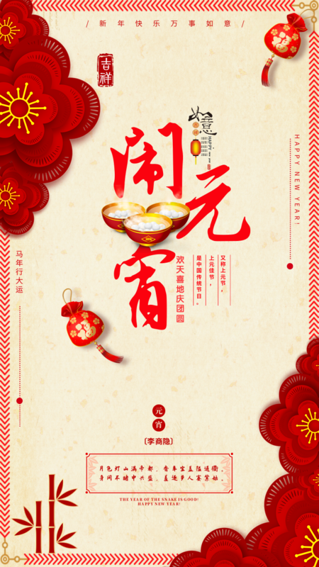 3D半调风元宵节喜庆营销祝福问候手机海报
