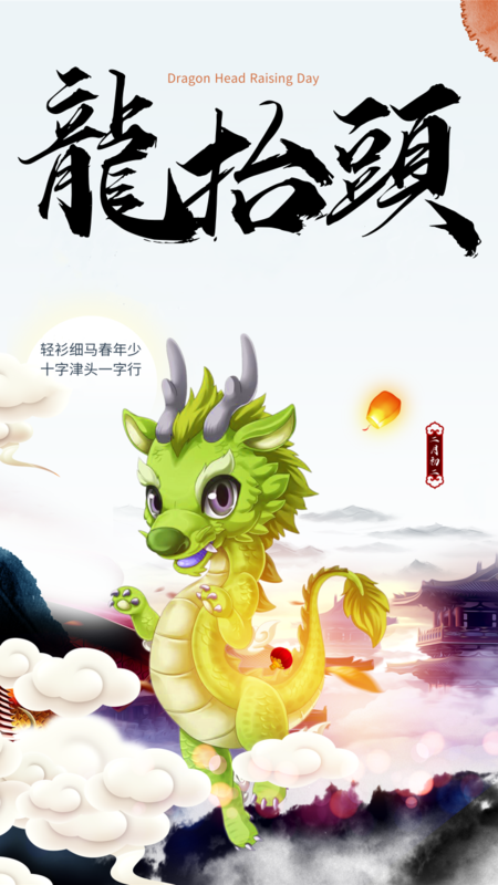 中国风二月二龙抬头温暖手机海报
