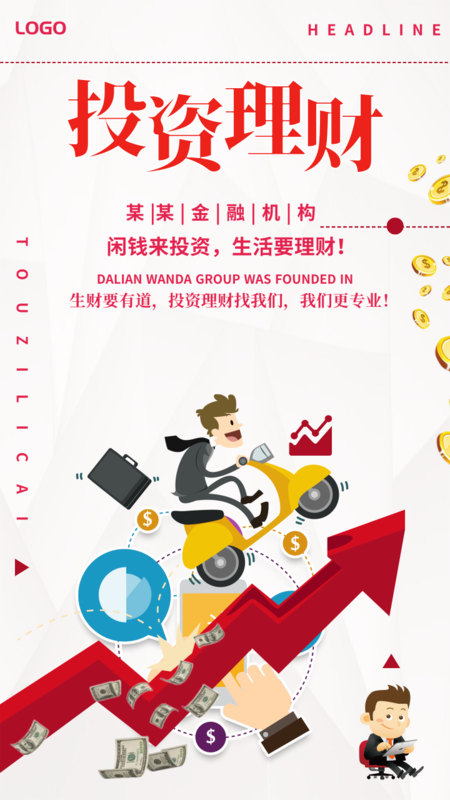 插画人物风格投资理财促销海报/手机海报