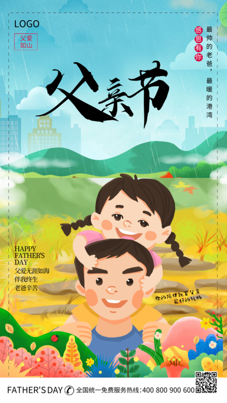 卡通风格父亲节手机海报