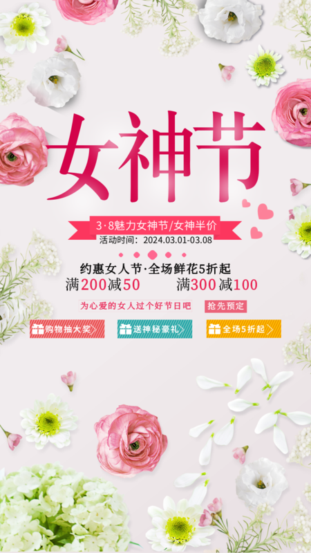 白色女神节促销手机海报