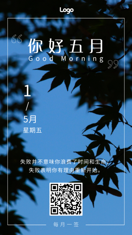 凡科快图提供5月每月一签手机海报/每日一签在线设计,属于社交媒体下的每日一签模板,适合活动推广、产品促销、宣传等多个应用场景,鲜花植物等行业通用,点击使用此模板可在线设计每日一签,模板中的文字和图片均可编辑,1分钟完成图片设计,一键免费下载高清每日一签。