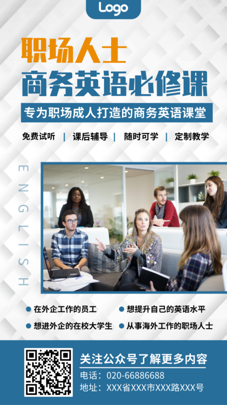蓝色企业风课程直播营销宣传手机海报