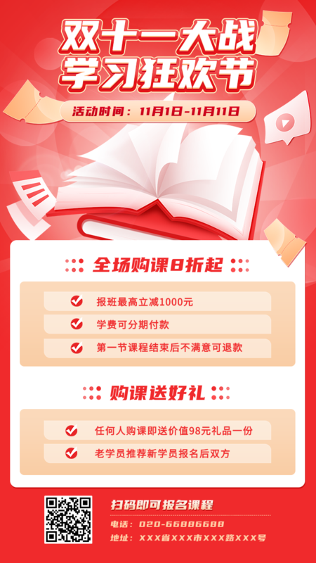 红色双十二课程促销手机海报