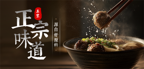 简约图文牛肉丸电商宣传移动端横幅
