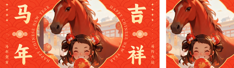 红金风毛笔字马年新年祝福公众号推送套装