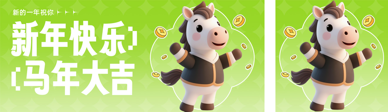 插画风马年祝福问候公众号推送套装/公众号推送套装