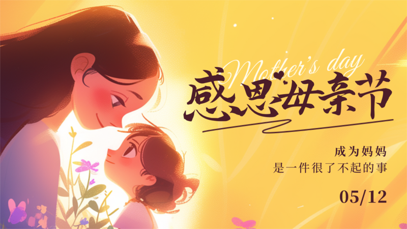 手绘风母亲节祝福横板海报/横版海报