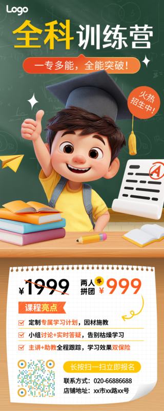 3D风提升班招生宣传长图海报