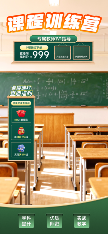促销风图文课程产品直播间装修竖版直播背景