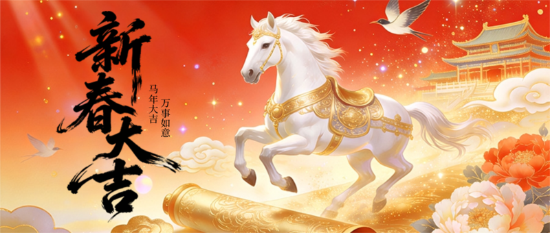 红金风马年新年祝福公众号推送首图