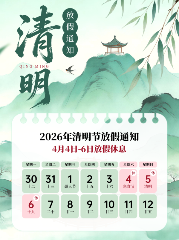 弥散风清明节放假通知小红书配图