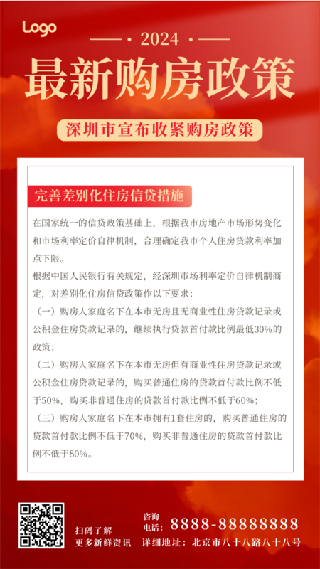 插画风最新购房政策手机海报