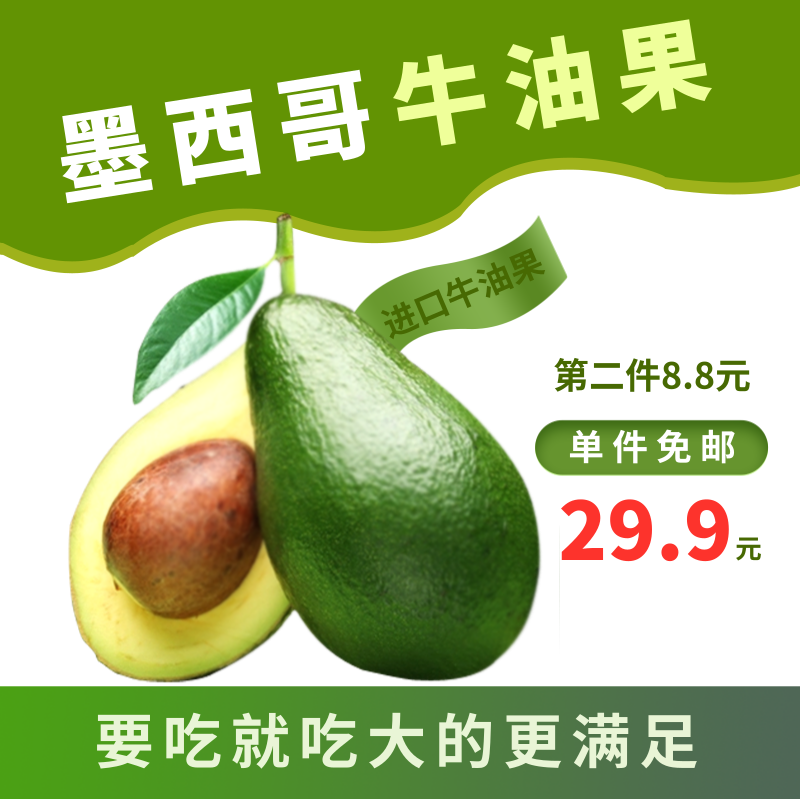 简约绿色风进口牛油果水果宝贝主图