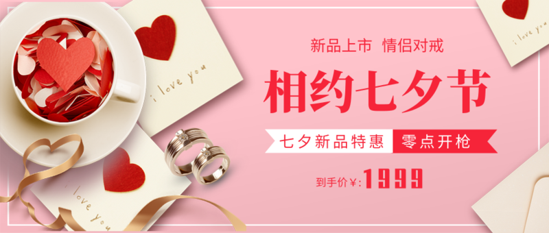 温馨粉色相约七夕节优惠促销宣传/公众号推送首图