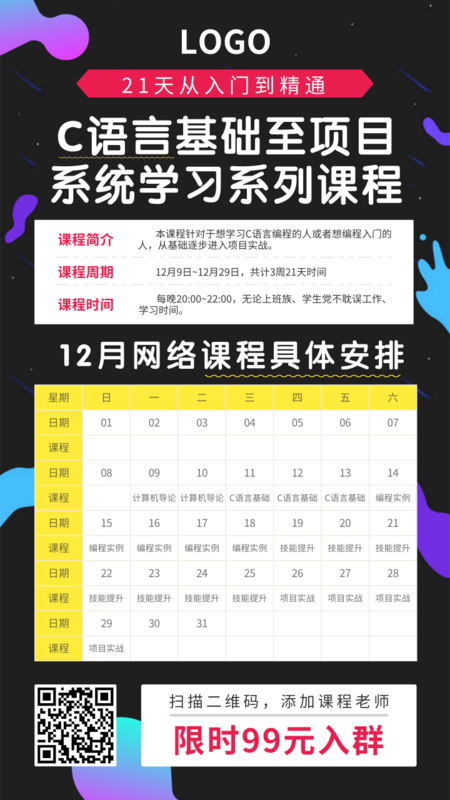 商务风企业培训课程表手机海报