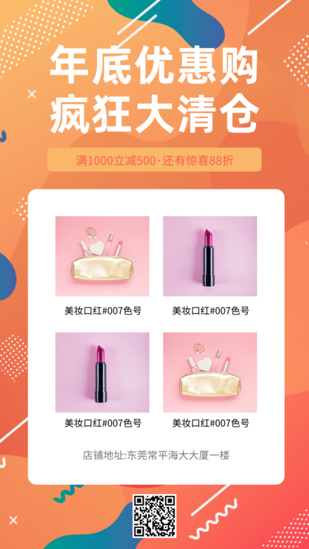 凡科快图提供促销风年底大清仓活动手机海报在线设计,属于社交媒体下的手机海报模板,适合活动推广、产品促销、宣传等多个应用场景,美妆个护等行业通用,点击使用此模板可在线设计手机海报,模板中的文字和图片均可编辑,1分钟完成图片设计,一键免费下载高清手机海报。