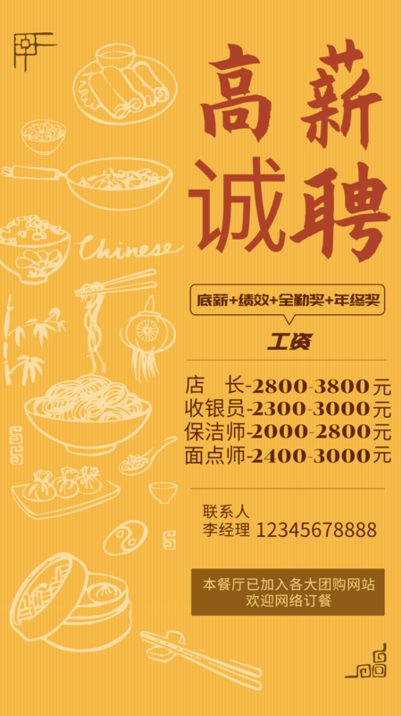 红金风春季招聘手机海报
