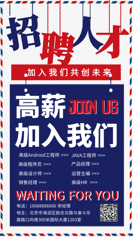凡科快图提供公司企业校园招聘通用/手机海报在线设计,属于社交媒体下的手机海报模板,适合活动推广、产品促销、宣传等多个应用场景,互联网科技/教育培训等行业通用,点击使用此模板可在线设计手机海报,模板中的文字和图片均可编辑,1分钟完成图片设计,一键免费下载高清手机海报。