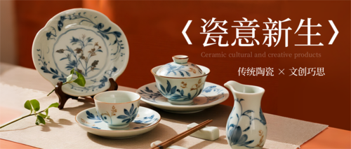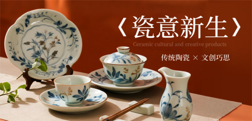 简约图文陶瓷文创宣传移动端横幅