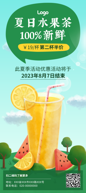 肌理插画风夏季水果茶促销活动1.8m展架/1.8m 展架