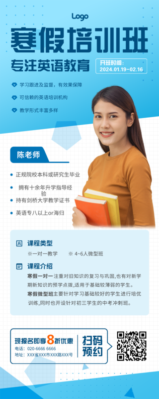 手绘风寒假班招生营销长图