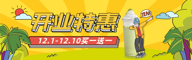 手绘风甜品饮料开业特惠活动推广pc端banner