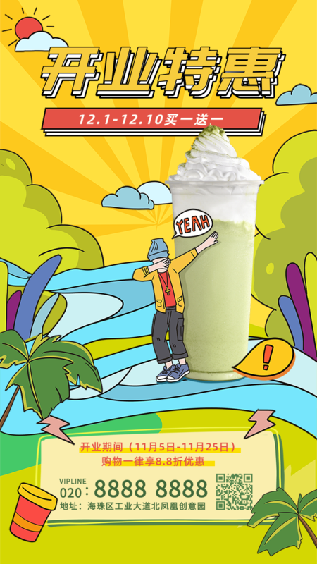 凡科快图提供手绘风甜品饮料开业特惠活动推广手机海报在线设计,属于社交媒体下的手机海报模板,适合活动推广、产品促销、宣传等多个应用场景,餐饮美食等行业通用,点击使用此模板可在线设计手机海报,模板中的文字和图片均可编辑,1分钟完成图片设计,一键免费下载高清手机海报。